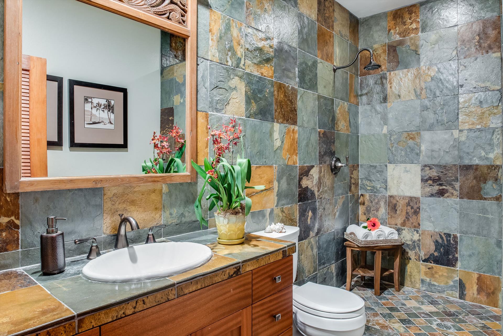 Relax and enjoy your morning coffee or barbecue some Hawaiian delights outside on the slate floor Lanai.
